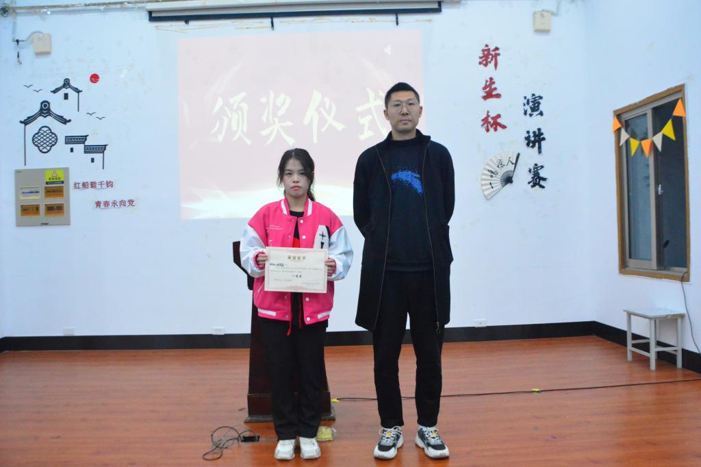 在简洁的开场白后,22位选手依次上台演讲。在比赛过程中,选手们紧密贴合主题,或结合自身经历,字字真情,或借名人真事,旁征博引。以自信十足的姿态,慷慨激昂的演讲,配合着肢体动作,展现出色的演讲能力,博得台下观众阵阵掌声。比赛中,还穿插了关于党知识的趣味小问答,提高了观众们的参与感,将现场气氛推向了一个新的高潮。在比赛最后,由杨晶老师对选手们的表现进行点评,她认同选手们运用大量排比、引用等手法使演讲稿更加生动,更加富有感染力,鼓励大家在演讲过程中加入互动,拉近与观众的距离感。由于六名选手分数难分伯仲,因此评委老师现场出题加赛一轮,以“我是嘉兴代言人”为题目展开即兴演讲,六名同学临场发挥,逻辑清晰,毫不怯场。最终,秘书N212张梦鑫以优异的表现荣获一等奖,汉语言N211徐嘉玲和日语N211卢锦莹荣获二等奖,法学N212吴若丹、汉语言N211许汪琴娜和法学N212俞华玲荣获三等奖。