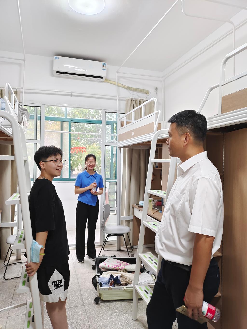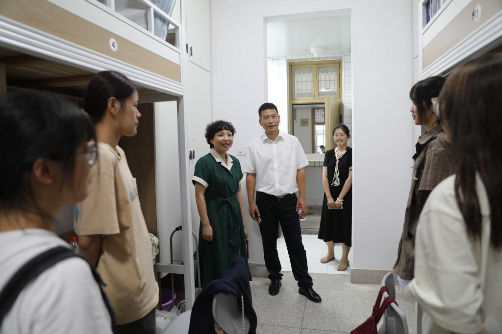 8月27日下午,校党委委员、副校长朱蓉走访taptap点点官网新生寝室,亲切看望taptap点点官网2022级已报到新生。taptap点点官网党委副书记杨燕群及新生辅导员陪同走访。