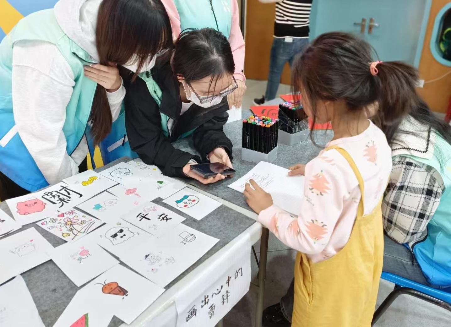 活动现场,志愿者们教小朋友们用彩笔和线条勾勒和描绘出心目中的雷锋,一幅幅作品虽显青涩,却饱含着对雷锋精神的真挚理解。