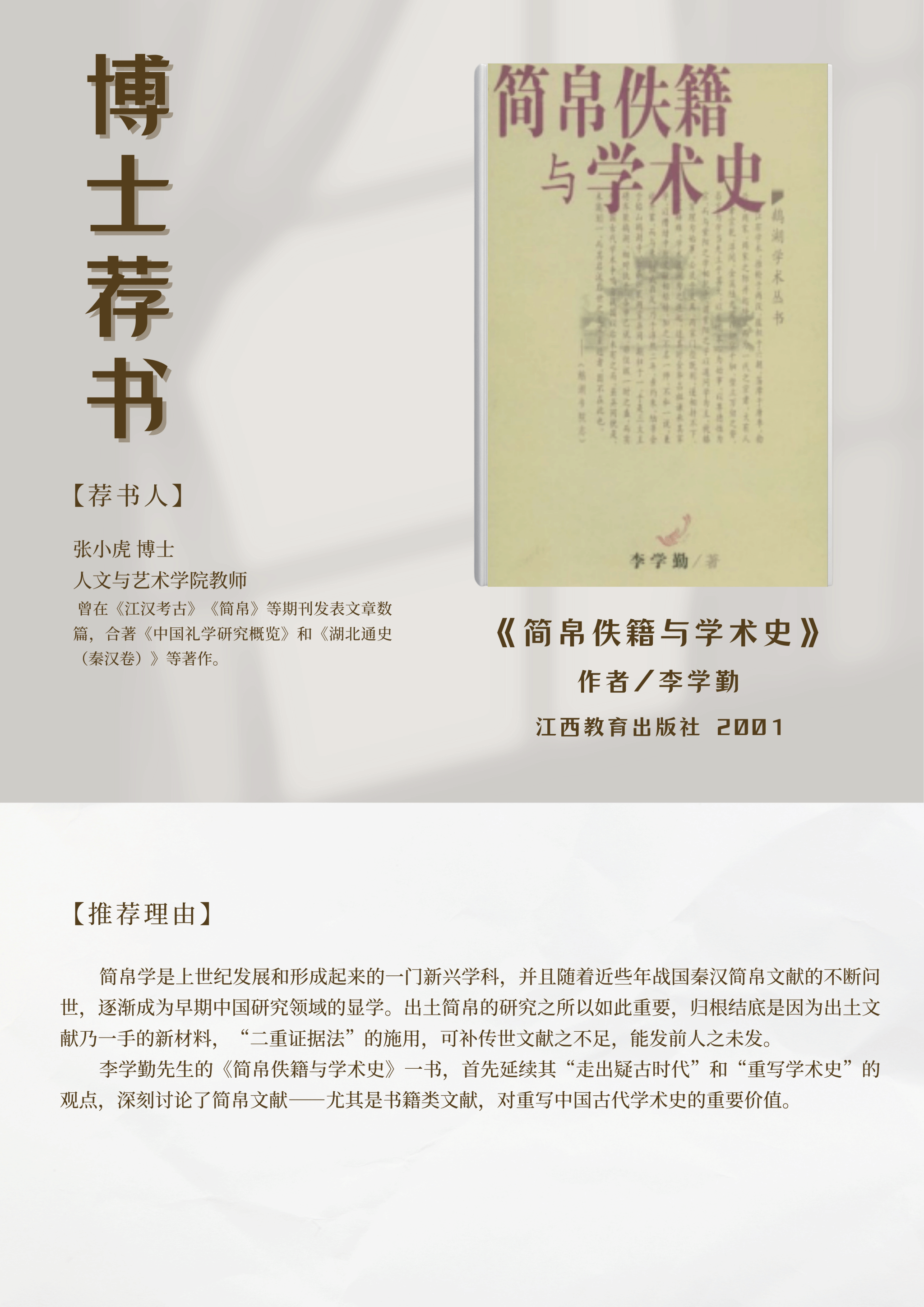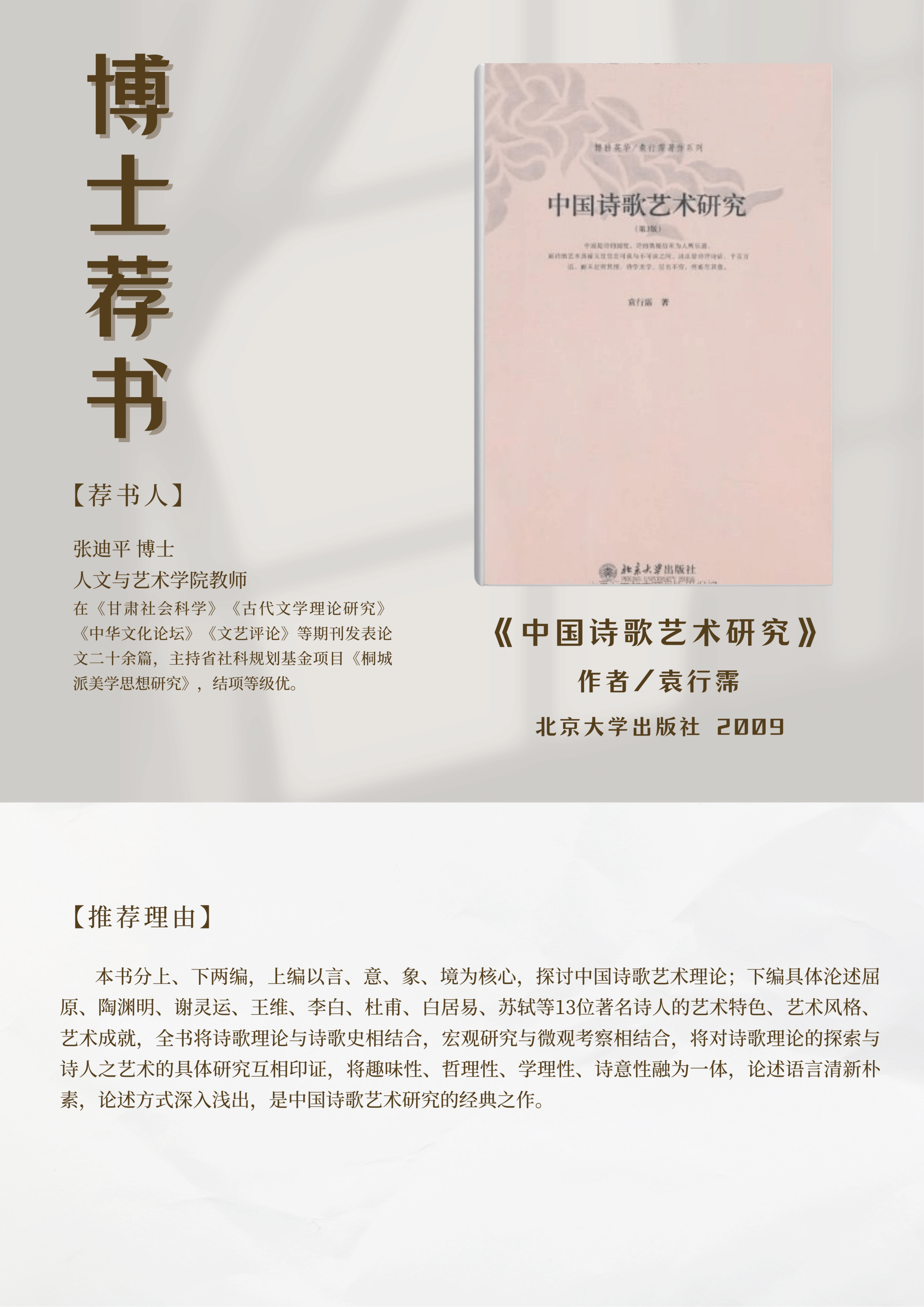 为进一步营造“书香人文”氛围,拓宽师生沟通分享渠道,现在世界读书日来临之际推出“博士读书会”活动,提供博士推荐书单(排序不分先后)供广大师生阅读。