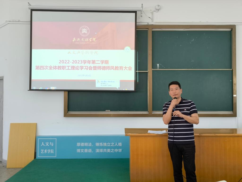 6月8日下午taptap点点官方网站在人文楼310教室召开了2022-2023学年第二学期第四次全体教职工理论学习会暨师德师风教育大会。学院副书记杨燕群、副院长赵伯祥主持会议、学院全体教职工参加会议。