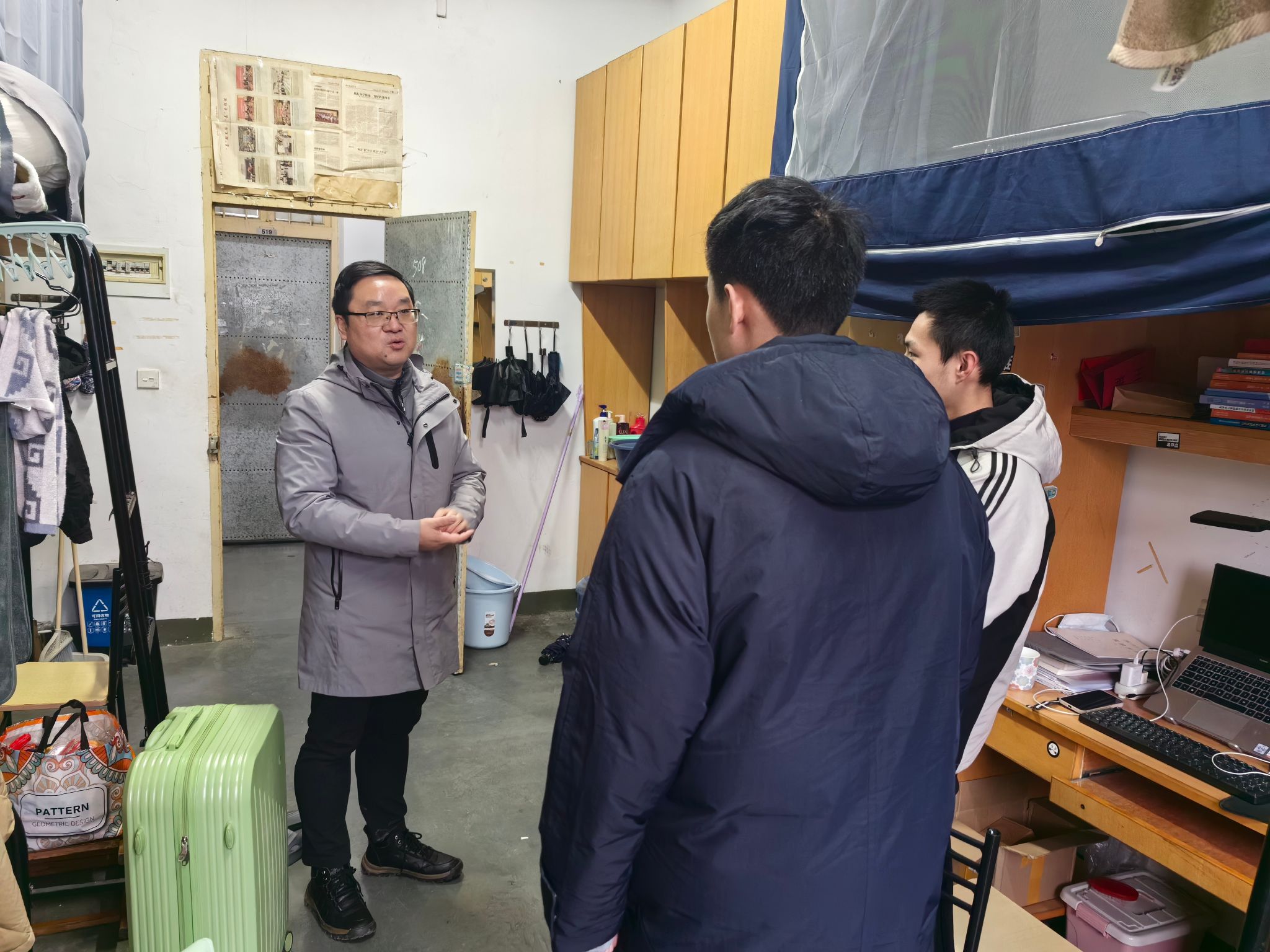 新学期伊始,为了解教师、学生返校情况,2月25日,taptap点点官方网站党委书记王晨、副院长赵伯祥、党委副书记罗景群在分别走访了学院各教研室、学生宿舍以及语音实验室。