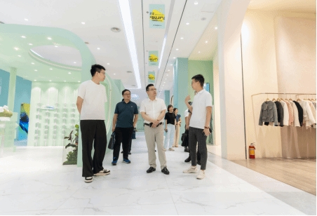 上午,贾文胜一行先后前往当湖街道嘉兴市者舍互娱文化创意有限公司、时尚公园抖音电商直播基地调研,现场了解企业发展历程、特色优势和发展需求,并与企业代表、当湖街道相关负责人座谈交流。