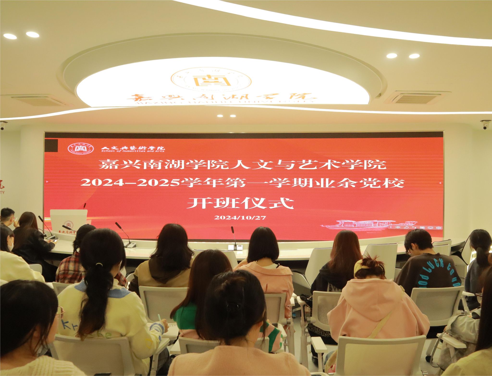 2024年10月27日晚,taptap点点官方网站2024-2025学年第一学期业余党校开班仪式在融媒体中心隆重举行。学院党委副书记罗景群,学生党支部书记张雨逸、陈剑、陈轶甄以及44名业余党校培训学员出席开班仪式。本次仪式由业余党校班主任赵卓均主持。