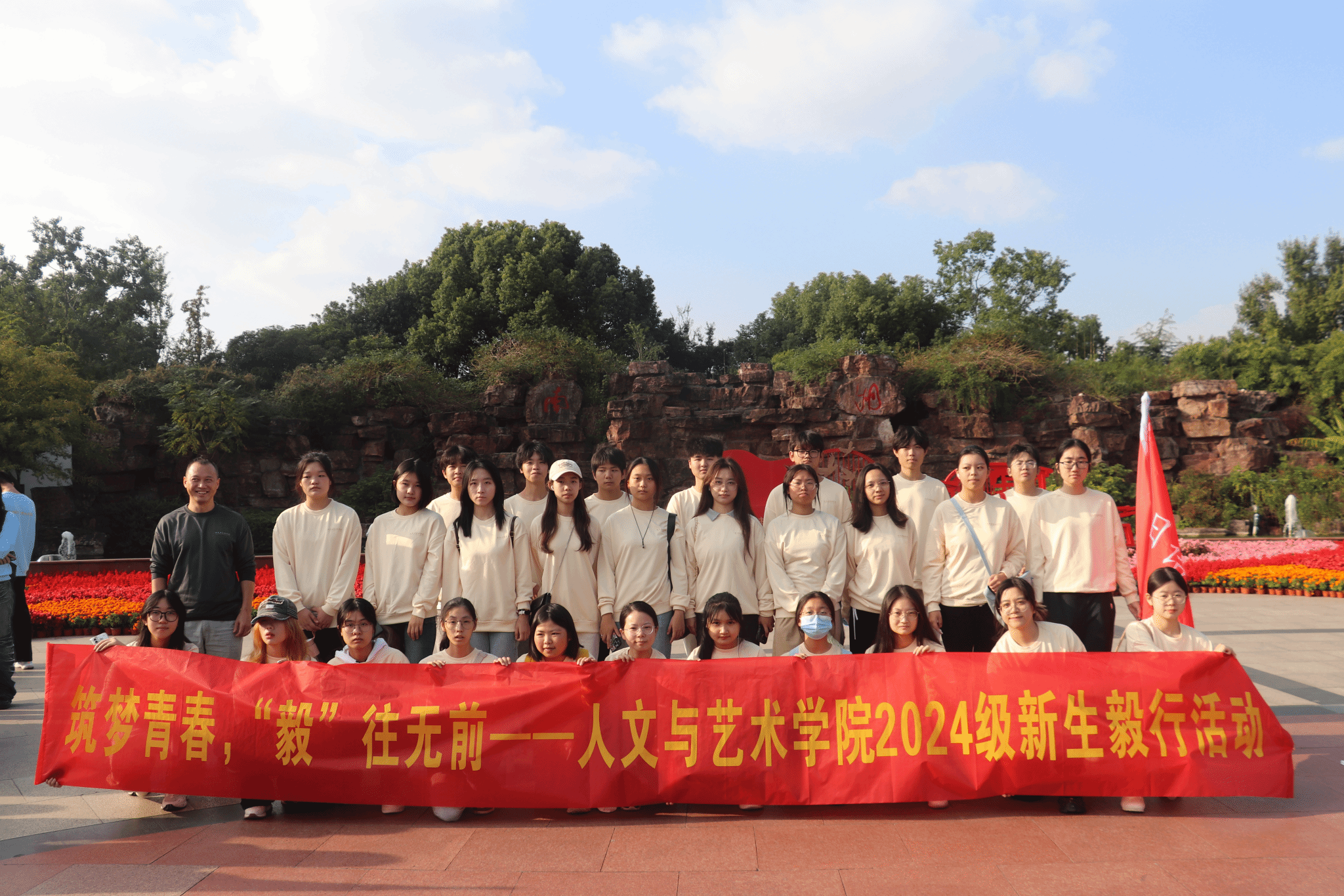几度秋意浓,又是一年毅行时。下午1时,全体参与人员在校东门集合,大家在各班班旗的指引下共同毅行前往南湖革命纪念馆以及湖心岛。