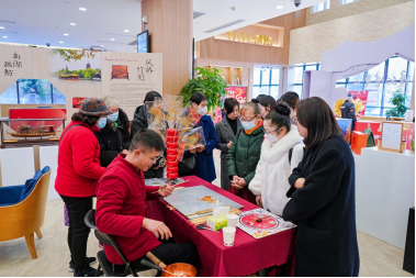 展览精心挑选了许村粉塑、海宁皮影戏、桐乡历本袋、凤桥竹刻、平湖糟蛋、硖石灯彩、蓝印花布等一系列极具嘉兴地域特色的非遗项目,全面展现了大运河嘉兴段 110 公里沿岸丰富多彩的文化瑰宝,这些非遗项目宛如熠熠星辰,承载着嘉兴深厚的文化底蕴与独特民俗风情。开展当日,现场热闹非凡,海宁粉塑、糖画等传承人的精湛技艺展示吸引了众多民众驻足观看与亲身体验,在互动中拉近了民众与非遗的距离。