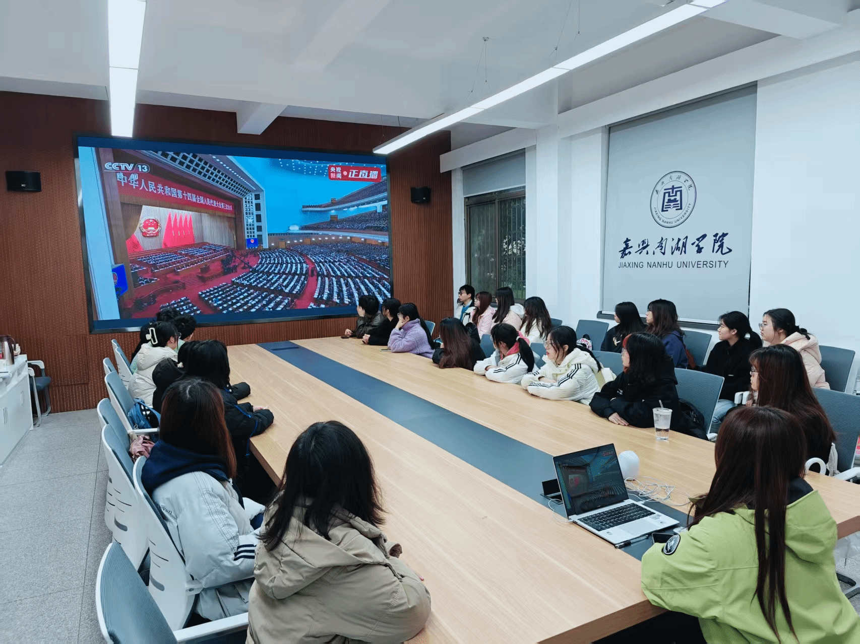 3月5日上午9时,十四届全国人大三次会议在北京人民大会堂隆重开幕,taptap点点官方网站积极响应号召,组织师生代表在人文楼101收看开幕会直播。学院老师、班级通过集体学习、线上自学等形式开展学习。