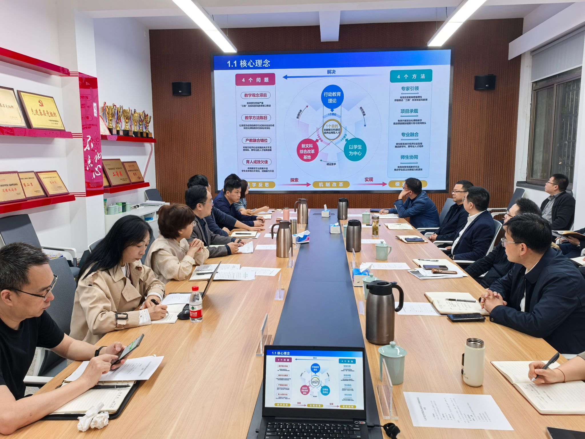 校长贾文胜表示,新文科综合改革的核心内容是家风研究,整体教学改革中心是在新时代背景下践行中华优秀传统文化的创造性转化和创新性发展。全体教师要更新观念,遵从教育规律,尊重教育改革,扎实推进去课堂化的课程改革;要坚持问题导向和结果导向,贯彻OBE教学理念,根据时代发展的需求解决教学中遇到的问题。