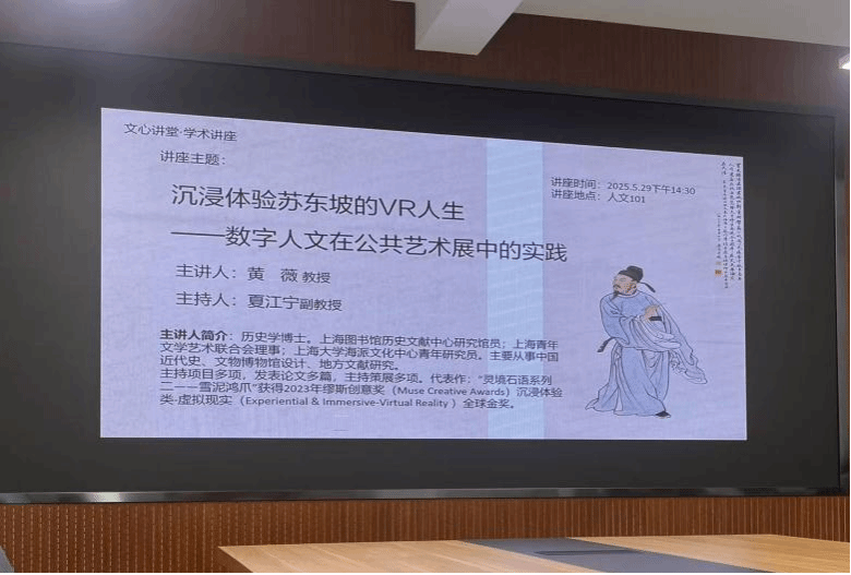 在讲座最后,黄薇老师还和大家介绍了她本人对苏东坡研究的深度和广度,通过特色案例让大家领略到了VR技术在学术研究和文化传播中的独特魅力。